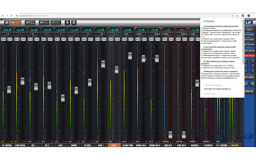 Расширение для браузера Google Chrome/Chromium позволяет настроить midi-контроллер для работы с элементами web-интерфейса цифровых микшерных пультов Soundcraft семейства UI. Возможны установка громкости, mute, solo выбранного на главном экране web-интерфейса канала, а также назначение функций Mute All, Mute FX, Tap Tempo. Настройки контроллера сохраняются. Их можно как частично, так и полностью сбросить. Расширено управление с клавиатуры компьютера: изменение громкости выбранного канала клавишами 'PageUp' и 'PageDown', или '>' и '<', а также установление настройки bpm Tap Tempo с помощью клавиши 'T'. В виджете плеера организовано управление с клавиатуры функциями изменения громкости, mute, solo. Данное расширение бесплатное. Разработчик (музыкант, вокалист, программист) будет благодарен за положительные отзывы и оценки, а также любую помощь, поддержку, пожертвования на развитие проекта. ВНИМАНИЕ!!! В версиях браузера выше v.76 функциональность ограничена (доступно только управление с клавиатуры компьютера) в связи с политикой блокирования работы Web-Midi-Api на ресурсах без HTTPS, на которых и располагается веб-интерфейс микшерных пультов Soundcraft UI https://www.chromestatus.com/feature/5138066234671104. Возможны ДВА решения: I) 1. ПЕРЕЙТИ в раздел флагов браузера, введя в адресную строку браузера chrome://flags/#unsafely-treat-insecure-origin-as-secure, 2. ВКЛЮЧИТЬ (установить в Enabled) флаг #unsafely-treat-insecure-origin-as-secure 3. ВПИСАТЬ используемые адреса web-интерфейса; в общем виде это будет выглядеть так: http://ui-mixer.io,http://10.10.0.80,http://10.10.1.1,http://10.10.1.80,http://10.10.2.1,http://10.10.2.80,http://192.168.0.80,http://192.168.1.80,http://192.168.100.80,http://192.168.43.80 4. ПЕРЕЗАПУСТИТЬ браузер (например, путём нажатия на кнопку "Relaunch"). ИЛИ II) Использовать расширение в поддерживаемых версиях Chromium (v.45 - v.76), что, с одной стороны, быстрее, надёжнее и работоспособнее, а с другой, не затронет настроек уже используемого браузера Google Chrome. Ссылки на скачивание с официального репозитория рабочих версий Chromium: Chromium v.76 x32: https://www.googleapis.com/download/storage/v1/b/chromium-browser-snapshots/o/Win%2F665004%2Fchrome-win.zip?generation=1559266321461084&alt=media Chromium v.76 x64: https://www.googleapis.com/download/storage/v1/b/chromium-browser-snapshots/o/Win_x64%2F665006%2Fchrome-win.zip?generation=1559266498559000&alt=media Примечание. Использовать для назначения действий на midi-контроллер ОДНОВРЕМЕННО на нескольких разных браузерах не получится в виду ограничений архитектуры браузеров. В ОС должны быть установлены драйверы для midi-контроллера. Midi-контроллер должен быть подключен до запуска Google Chrome. Также желательно почистить кеш, cookies для сайта веб-интерфейса. Список адресов, по которым доступна работа расширения с Web-интерфейсом пульта на случай, например, использования отдельного роутера: "*://ui-mixer.io/mixer.html", "*://www.soundcraft.com/ui-demo/mixer.html", "*://www.soundcraft.com/ui24-software-demo/mixer.html", "*://10.10.2.1/mixer.html", "*://10.10.1.1/mixer.html", "*://10.0.0.80/mixer.html", "*://10.0.1.80/mixer.html", "*://10.0.2.80/mixer.html", "*://192.168.0.80/mixer.html", "*://192.168.1.80/mixer.html", "*://192.168.2.80/mixer.html", "*://192.168.43.80/mixer.html", "*://192.168.100.80/mixer.html". Если Вы используете внешний роутер, то для обеспечения функциональности расширения, присвойте микшеру Soundcraft один из представленных выше IP-адресов. ВАЖНО!!! У кого тормозит web-интерфейс пульта Soundcraft UI на браузерах на основе Chromium (Google Chrome, Opera, Edge и т.д.): 1) зайдите в настройки браузера Chrome 2) в категории "Система" найти и ОТКЛЮЧИТЬ пункт "Использовать аппаратное ускорение (при наличии)". 3) перезапустить браузер Данный баг никак не связан с настоящим расширением. В случаях некорректной работы расширения прошу направлять Ваши замечания с её описанием по адресу [